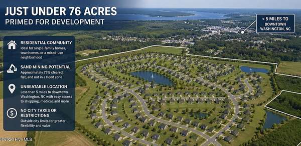 Calling all investors, this exceptional offering includes three parcels totaling just under 76 acres, primed for development or resource use such as sand mining. Ideally located less than five miles from downtown Washington, NC, the property provides convenient access to grocery stores, medical facilities, and shopping, all while remaining outside city limits, meaning no city taxes or restrictive ordinances. Approximately 75% cleared, level, and not located within a flood zone, the land is well-positioned for a wide range of uses, from a residential community to an industrial venture. An additional opportunity exists with a neighboring parcel currently on the market, offering direct road access to Magnolia School Road (separate ownership; 536 Magnolia School Rd.), further enhancing development potential when combined. With scale, flexibility, and location on its side, this property is ready to support your next vision, bring your plans and explore the possibilities.