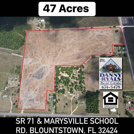 Est $2,245/moThis 47 acres of cleared high and dry property is located 15 minutes south of Blountstown and about 30 minutes north of Port St. Joe and Mexico Beach. This fine property has approximately 516' frontage on SR 71 and 1,560' deep. There is approximately 450' frontage on Marysville School Road and 2,040' deep. Great spot to build a home or homes or develop your own horse or livestock pasture!! $299,000.00