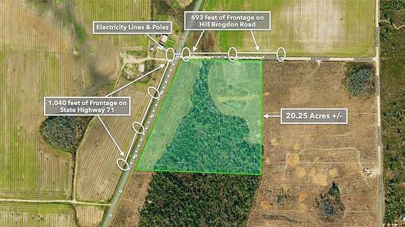 Conveniently situated along State Highway 71, this property boasts 1,040 feet of road frontage on the western boundary, providing easy access and high visibility. Additionally, Hill Brogdon Road offers 693 feet of frontage along the northern boundary.