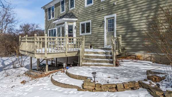 This inviting home is designed for comfortable living, with spacious rooms and thoughtful features throughout. The kitchen offers a large island perfect for everyday meals, homework time, and gathering together. Stainless steel appliances, abundant cabinetry, and a walk-in pantry complete this well-appointed space. The adjoining family room is both cozy and welcoming, centered around a beautiful stone fireplace and stunning views that create the ideal setting for relaxing evenings. The primary suite provides a peaceful retreat, featuring an oversized ensuite with a jetted tub and an attached flex space ideal for a nursery, playroom, workout room, dressing area, or home office. Three additional upper-level bedrooms offer comfortable accommodations for family or guests and share a spacious hall bath with a double vanity. A second-floor laundry room adds convenience to busy daily routines. Practical touches like a large mudroom with a dog shower and a finished basement with room to grow support an active family lifestyle. Outside, the expansive deck overlooks 2.75 wooded acres where children and adults alike can explore, play, and unwind. Mature fruit trees and a charming chicken hutch add character and hands-on opportunities to enjoy the outdoors together. Set in a highly desirable area with top-rated schools and close to all that the Fox River Valley has to offer, this home presents a rare blend of space, privacy, and natural beauty-an ideal place to put down roots and create lasting family memories.