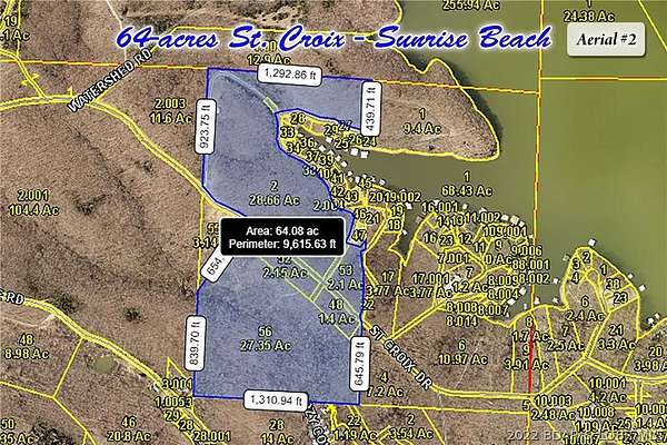 Hwy 5, to State Rd F, left on Cozy Cove Rd, 2nd left on St. Croix Rd, property is on the both sides of the road (approx 64 acres).
