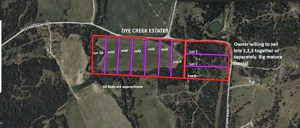 Est $1,350/moThis is lots 1,2,3 Dye Creek combined for a great tract of land with mature trees, great building spot and plenty of room for the kids to roam on. Owner willing to sell all or partial so come check out this incredible tract of land in the middle of ranch country with plenty of peace and quiet. Water wells in area are good, electric is on the property, minimal restrictions so come build that barndo and have your horse too! Plat in pictures along with other info.