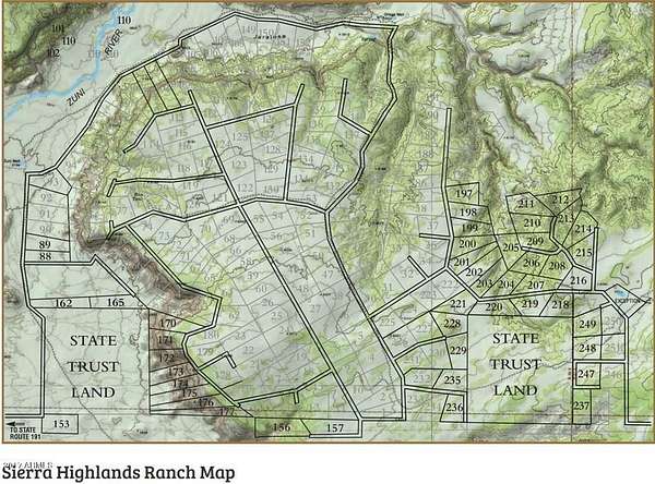 Off of Interstate 191, North of St. Johns. Turn right at sign that says ''Sierra Mountain Ranch'' (The other side of the sign says 'Sierra Highlands Ranch').