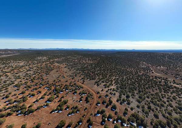 This 20-acre parcel is located in unincorporated Apache County, Arizona, in a quiet rural area characterized by open countryside and scattered homes on large tracts. The property features a generally rectangular shape and offers extensive frontage along a maintained dirt or gravel road, providing convenient physical access.