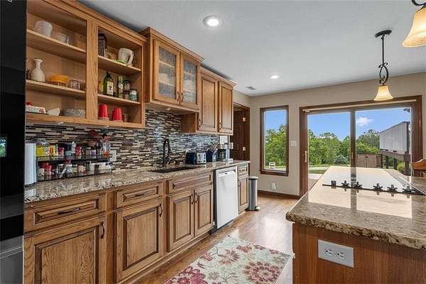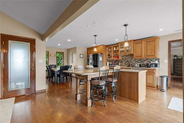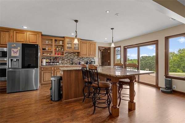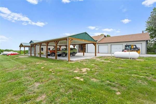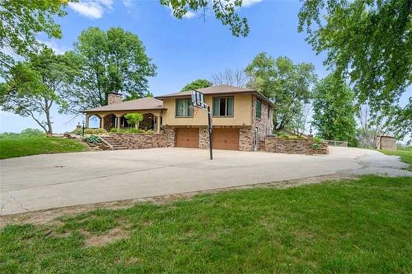 15.71 +/-Acre cattle & horse property! This property has many impressive features with a Main House offering 5 bed 4 bath Ranch/Raised Ranch, cathedral ceilings, stone gas fireplace, bay window with seat bench, large open kitchen--huge granite island, custom cabinets, stainless appliances, dual ovens/convection, main floor master bedroom with ensuite w/ separate shower and jetted tube, a formal dining room, an eat in dining room & finished basement & sauna, a livestock barn, separate heated & cooled Office/Gym building with wet bar & bathroom, 41x84 outbuilding with concrete floors, heating & cooling, bathroom, water, spa-loft with cold plunge, hot tub, steam room. This compound offers an an abundance of wildlife. While this property is secluded and away from the busy everyday life, you are still only minutes from the downtown of St. Joseph, shopping schools, restaurants and entertainment. The property has great highway access. Just 45 from the Kansas City area. Travel to this property is on paved roads. 17 Vehicle Parking....Well over 5000 sq.ft. of combined finished space.