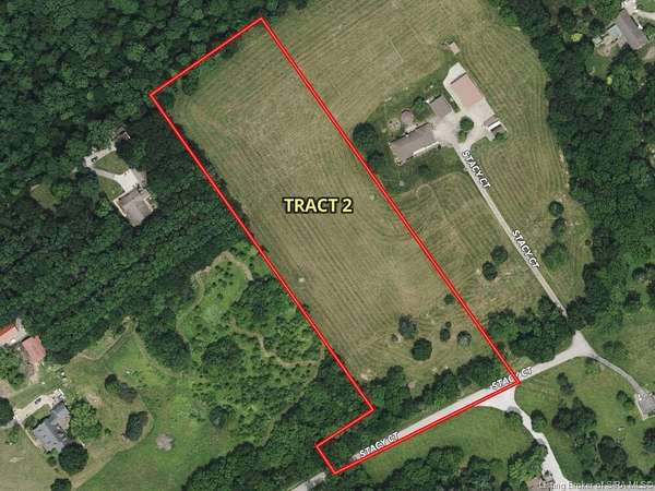 AUCTION ends APRIL 7 @ 4 PM! Charlestown 14.3+/- Ac w/Brick Ranch Multi-Parcel Real Estate Online Auction! Offered in two (2) tracts & combination bidding available! Bid on either tract separately or combined together! Tract 1 features 8.4+/- acres, home & all improvements. See separate listing for Tract 1. Tract 2 is a 5.8+/- acre adjoining, vacant building lot, featuring 415' +/- road frontage on Stacy Court, situated on a private cul-de-sac, ideal home site, no improvements, and is very conveniently located! Water & electric are available at the road-a (2") water main runs along the south side of Stacy Court-water company will set meter north of Stacy Court & south of creek. Lot may be split once by new buyer in 2026 without special approval. Part of this tract is located within Indiana's opportunity zone district. See Auctioneer's website for full details. Bid now @ https://www.beckortauctions.com/catalog/179869/ultimate-choice