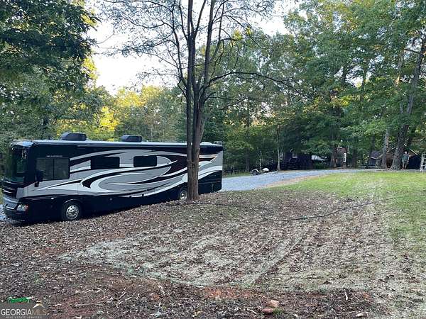 Surround yourself with the natural beauty of the North Georgia mountains on this 6-acre waterfront creek, wooded retreat in Dahlonega. Whether you dream of building a waterfront log cabin, creating a mountain hideaway, or simply parking your RV for weekend escapes, this property offers the freedom and flexibility you've been looking for. The current owners easily bring their 38' Class A motorhome onto the property, making it an ideal setup for RV living while you plan your future build. Enter your private oasis through dual estate gates and enjoy true wooded seclusion with seasonal mountain views and the soothing sounds of your deeded creek. The creek flows through the property, and you own on both sides ( approximately one acre on the other side of the creek)-an increasingly rare find in the Dahlonega area-making the land feel even more private and untouched. Just minutes from downtown, this peaceful retreat already has key improvements in place, including completed soil testing, electricity on site, and a 20x30 metal carport. With no HOA, no restrictions, and full creek rights, you have the freedom to design your mountain lifestyle exactly as you envision it. Multiple build sites allow for endless possibilities-whether it's a cozy cabin, a family compound, or a rustic getaway surrounded by nature. This is your chance to own a one-of-a-kind mountain property in one of Georgia's most scenic and desirable locations.