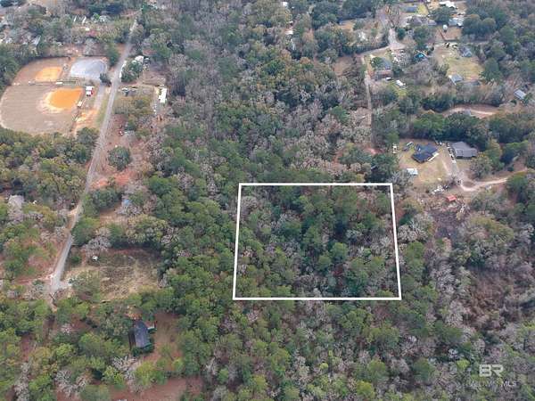 Heading west on Spanish Fort Blvd, turn left onto Driftwood Lane, drive down Driftwood Lane until it takes a slight bend to the right, and continue down the gravel road until it bends to the right again, and park in the gravel loop. The land is located to the west of the gravel loop.