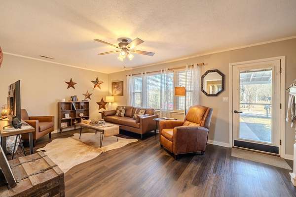 If you are looking for quiet country living - this is the home for you! Spacious Home with 2837 square feet that features 4 Bedrooms, and 2 Bathrooms. Formal Living Room with a Gas Fireplace as you come through the front door. Large Den with Built in Cabinets and Electric Fireplace makes for a perfect Family Room! Kitchen has Stainless Steel Appliances featuring a Gas Range, Refrigerator, Microwave, Dishwasher plus a Walk-In Pantry!! Utility Room has a Stack Washer & Dryer that is included. Master Bathroom has a Beautiful Custom Tile Shower. Extra Room that can be used as an office. New Luxury Vinyl Plank Flooring throughout, and New Carpet in the Bedrooms. Double Garage to keep your vehicles nice & dry! Pole Barn on the back of the property for your outside equipment. 6.32+/- acres gives you plenty of room to run & play. Nice Patio off of the Den/Family Room with an Above Ground Pool. There is also a Storm Shelter on the property! So much to see with this home & property!
