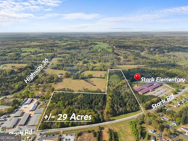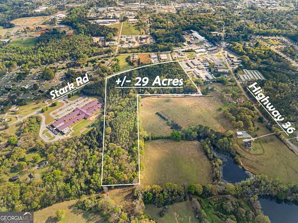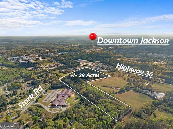 PRIME 29 ACRE COMMERCIAL/DEVELOPMENT TRACT - STARK ROAD, JACKSON, GA Exceptional opportunity to acquire 29 acres of timbered land with approximately 1,091 feet of road frontage on Stark Road in Butts County, just outside the Jackson city limits. This strategically positioned property is flanked by C-2 commercial zoning on both sides, with light industrial zoning directly across the street, establishing a clear commercial corridor and making this tract ideal for a wide range of development possibilities. Annexation into the City of Jackson is highly attainable - adjacent properties on both sides already fall within city limits, creating a natural path to municipal water and sewer service. The property offers convenient access to GA Highway 16, which connects directly to I-75 at Exit 205, placing this site within easy reach of the greater Atlanta metro area and the growing South Metro/Henry County commercial corridor. Jackson and Butts County continue to experience growth driven by proximity to Atlanta, Jackson Lake recreation, and expanding commercial development along the I-75 corridor. Currently timbered, the property presents a blank canvas for commercial, mixed-use, or large-scale residential development. The generous acreage, substantial road frontage, surrounding commercial zoning, and accessible infrastructure make this one of the most compelling development tracts available in Butts County. Timber value may provide additional return to the buyer. Listed as potential commercial. Buyers and developers are encouraged to verify zoning and permitted uses with Butts County Planning & Zoning. Don't miss this rare opportunity to secure a significant land position in one of Middle Georgia's growing communities.