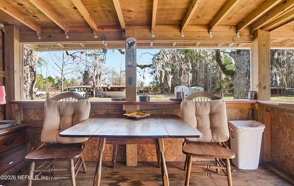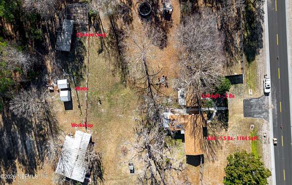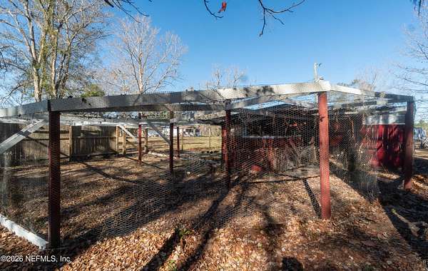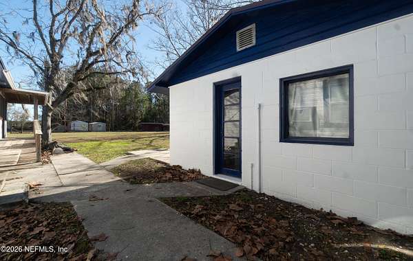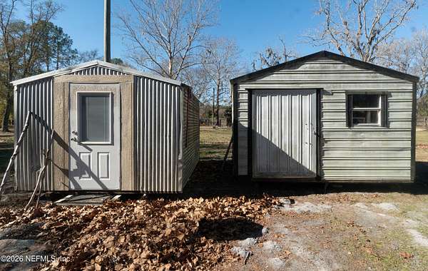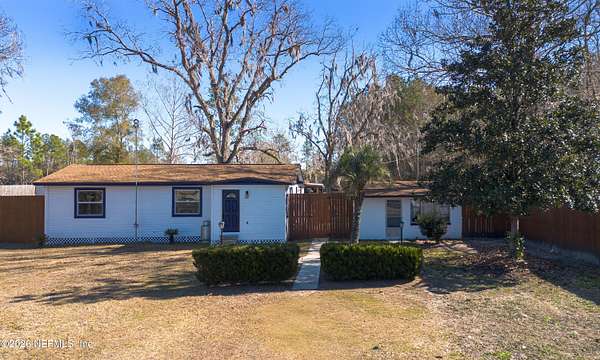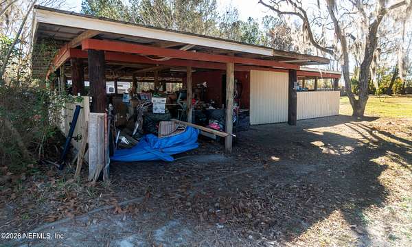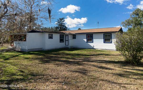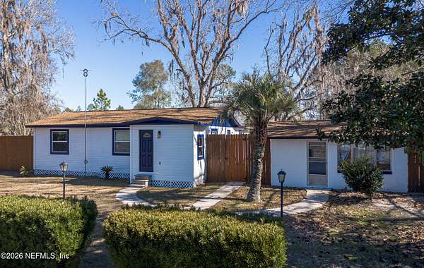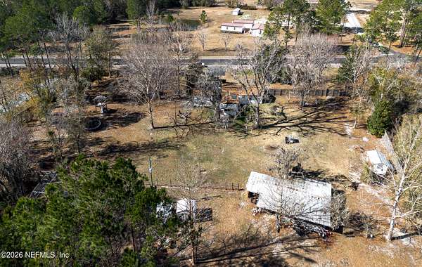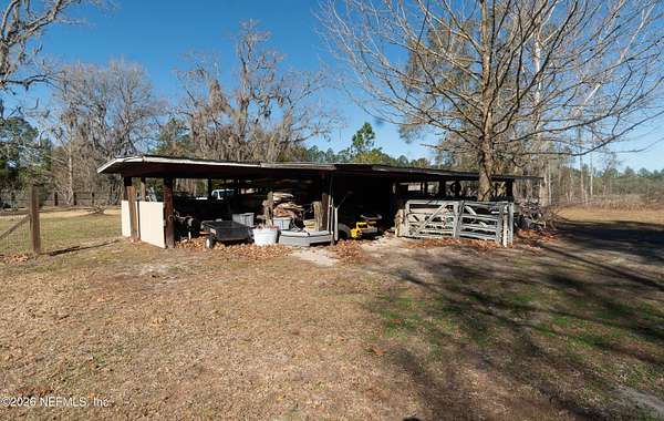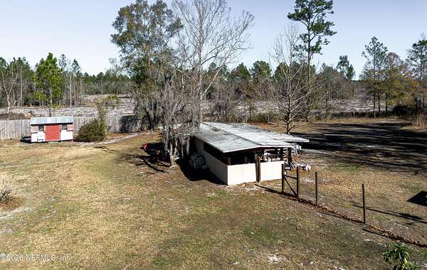 This Charming Rustic Home located on 13.71 acres of serene, private & secluded property which boast beautiful mature Pecan trees, Majestic Live Oaks, Holly trees & an Abundance of Wildlife. Main house has 2 bedrooms with (1) full bath & (1) 1/2 bath with screened back porch. Separate living space is an additional bedroom added with (1) 1/2 bath all with freshly painted exterior. This home also comes with a generously fenced back yard with a patio & small firepit area. A 2-horse stall barn with tack room, a huge but beautifully crafted chicken coop and 2 sheds all equipped with electric. There is a second driveway for entry to fenced back yard. With all acreage accessible by trails. Can be for hunting, horseback riding, atv's and sxs's. With immense & versatility of endless possibilities. No HOA. Short drive to City of Starke, shopping, local schools & nearby recreational areas with US 301 bypass makes it a short commute to Jacksonville, Lake City, Gainesville & other surrounding areas