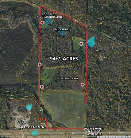 This incredible 94+/- acre turn-key recreational and hunting property is conveniently located just three miles from Starkville, MS, offering year-round enjoyment and investment potential. With 1,000 feet of frontage on Highway 82, 20 acres of rentable cropland on the front of the property, and opportunities for commercial development, this tract is both a premier hunting destination and a smart long-term investment. The property supports a diverse population of deer, turkey, ducks, and doves, and includes extensive improvements for convenience and productivity. Features include an all-weather internal road system, extensive drainage work, two potential duck holes with water-control gates, and 6.5+/- acres of established food plots. Approximately 13 acres of thicket provide ideal bedding cover for wildlife. Included with the sale are two Redneck blind box stands, three two-man ladder stands, several lock-on stands, feeders, and an equipment shed, making this property truly turn-key and ready to enjoy. A prime site for a cabin or barndominium is already established, with water and power in place for easy development. Additionally, the buyer may assume a portion of the existing loan at 3.99 with dividends, offering an attractive financial advantage. Perfect for the busy professional seeking quick access to a quality hunting property, or a Mississippi State fan looking to enjoy hunting while attending fall and spring sports, this tract provides both convenience and recreation. Mature oaks enhance the landscape and habitat, while a 2.5+/- acre dove field, previously planted in brown top millet, offers an exciting start to the hunting season. Don't miss the opportunity to own a well-developed recreational property with commercial potential just minutes from Mississippi's bustling college town.