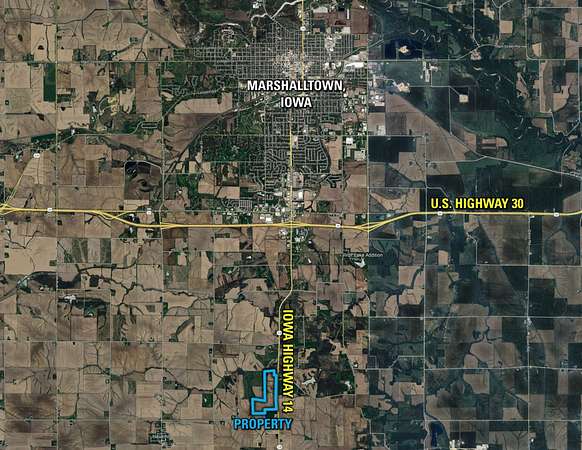 The farm is located directly on paved, State Highway 14 offering exceptional access for grain marketing opportunities as well as build site potential within 4 miles of Marshalltown, Iowa. Alliant Energy electric and IRUA rural water are available onsite.