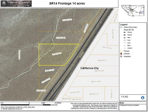 State Highway 14 north of California City Blvd. turn on frontage road and look for survey markers. Contact Listing Broker for appointment to assist showing this property. No sign yet.