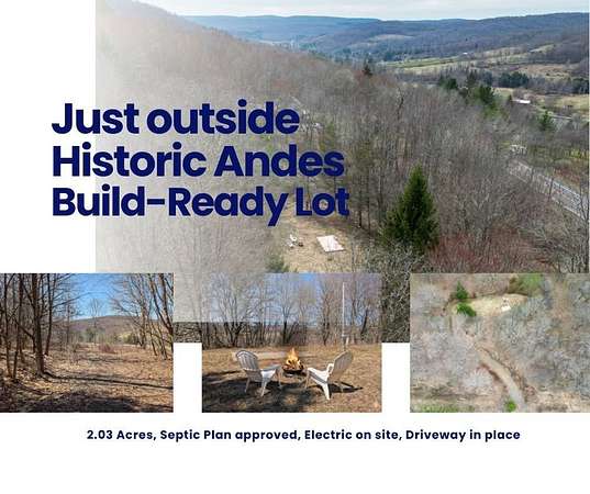 Discover the perfect canvas for your Catskill retreat in the highly sought-after town of Andes! This 2-acre parcel offers the rare opportunity to skip the "pre-build" headaches and start construction immediately. Located just minutes from the vibrant Main Street of Andes, a popular town famed for its boutiques, eateries such as Wayside Cider, and a creative community. This property is shovel-ready. All the heavy lifting is done: a DEP-approved septic plan is in place, a full survey is completed, and electric is already on-site. Access is a breeze via the gravel cut driveway. This lot provides the path of least resistance in one of the Catskills' most desirable markets. Enjoy privacy with high-speed convenience.