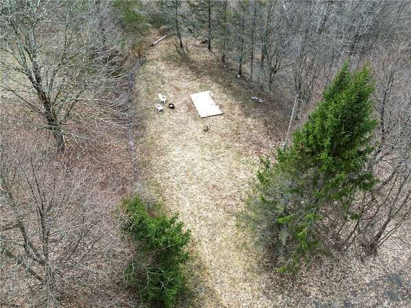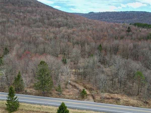Take 28 from Margaretville, type in google coordinates -74.763155 degrees , 42.195281 degrees , look for driveway with small blue ribbon on the pine tree. The property is surveyed with blue and orange tape.