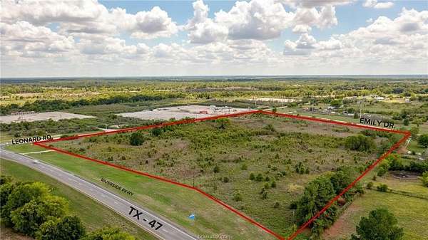 This 18.929 acre tract of land in a Bryan Opportunity Zone at the center of the upcoming Riverside Innovation Corridor project is close to TAMU, TAMU Health Science Center, Easterwood Airport, TAMU Rellis Campus, and the Brazos County Expo Center. It is located on the hard corner of Highway TX-47 (Riverside Parkway) and Leonard Road. There are no pipelines or easements running through the property, no significant elevation changes, and Wellborn Water is available on site. There is a City of Bryan 3-phase transmission line across from Emily Drive at the west boundary line and single-phase electricity on site along Leonard Road. The property provides 810+/- feet of Hwy 47 (Riverside Parkway) frontage, 1300+/- feet of Leonard Road frontage, and 700+/- feet of Emily Drive frontage. The City of Bryan has 2023-2025 planned sewer line upgrades and extensions. Targeted for massive growth in the next 2-5 years, this area is prime for investment.