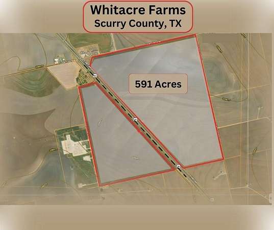 This 591-acre North Central Texas Farm is located in the southeast corner of Scurry County and on the edge of Nolan and Fisher Counties. The property is located ~17 miles NW of Sweetwater and ~20 miles SE of Snyder. It is bisected by State Highway 84 with roughly 396 acres on the NE side of Hwy 84 and 195 acres on the SW side of Hwy 84. Over 1 mile of frontage on divided State Highway 84 and 4,200 feet of frontage on County Road 466. The terrain is flat and the fertile clay loam soil is currently under cultivation. Potential uses include: 1. Solar Farm - key value drivers for this property being used as a large solar farm include: a. Located adjacent to a large power substation b. Large buildable acreage. c. Flat cleared terrain with easy access from the highway and county road. d. Strong solar irradiance estimated by LANDGATE at 228 W/M^2. e. Multiple high-voltage transmission lines bisect the property and connect to the substation. f. Numerous solar operations are already in place in neighboring counties. 2. Wind Farm - key value drivers include: a. Located adjacent to a large power substation - shares a property line with Oncor Electric power substation. b. Large buildable acreage. c. Flat cleared terrain with easy access from the highway and county road. d. Multiple high-voltage transmission lines bisect the property and connect to the substation. e. Numerous wind farm operations are already in place within a 100-mile radius of this property. 3. Oil and Gas and Minerals - key value drivers (note that mineral rights are not currently included in the price, but are negotiable). a. Located on the NE side of the Permian Basin. b. There are multiple oil fields near this property, with ongoing production 4. The property is currently under cultivation and produces annual income from farming. 5. Low Holding Cost - 1-d-1 agricultural tax valuation is held via cultivation lease keeping the taxes low.