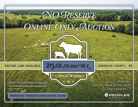 Mark your calendar for March 2nd at 9:00am CT when bidding opens on 215 acres m/l of well-maintained pasture in the heart of Mid-Missouri!