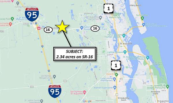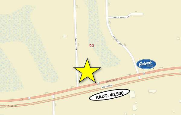 On North side of State Road 16, about 1.5 miles East of I-95, on the Northeast corner of SR-16 and Zygmont Ct.