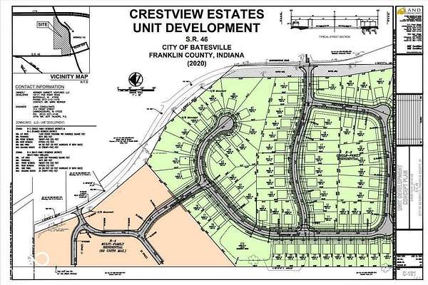 Est $3,137/moBusiness development opportunity in Batesville, Indiana! Prime property of +/-5 acres is zoned B-2 and anchors 140 door subdivision development. Traffic count of over 5,500 a day and additional exposure via Batesville High School/Batesville Primary School events. Batesville is nestled between Cincinnati and Indianapolis. Population of 7,300 with several communities with 30 minutes, Median Household Income of $62,000+, and state recognized school district. Site would be ideal for a gas station, restaurant, strip mall, professional office, or a mixed use of businesses. Surveyor is finalizing survey and filing with Franklin County. Listing will be updated once plat has been filed.
