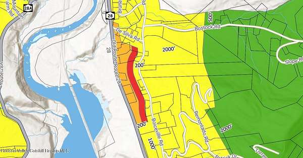 Incredible 27.9-acre development opportunity with mixed-use zoning and dual access from Route 28 and Upper Boiceville road. The front portion is zoned Highway Business with a 0.5-acre minimum, ideal for commercial use along this high-traffic corridor. The rear is zoned residential with a 1-acre minimum and could be subdivided for housing, a strip along the middle can go either way to be added to the residential side or the commercial side depending on your plans. Most of the residential lots offer beautiful mountain views waiting to be cleared. Located minutes from the rail trail, schools, shopping, and restaurants, close to Belleayre Mountain, hiking, and fishing. This is rare chance to develop in a growing Catskills location.