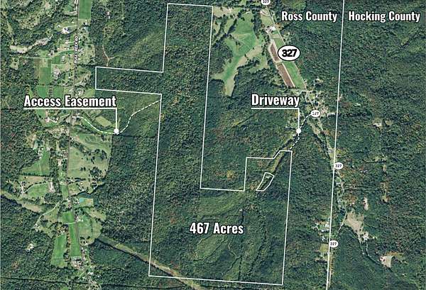 467 acres of land for sale in Ross County, Ohio. This large tract offers a rare opportunity for recreation, investment, or a private retreat. Located just 2 miles south of Laurelville, the property is mostly wooded with areas of marketable timber. Access is provided by a shared driveway from St. Rt. 327 as well as an easement from Bull Creek Rd. There are many possible building sites on the property, and a good portion of the land can be accessed by the ATV trails.
