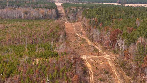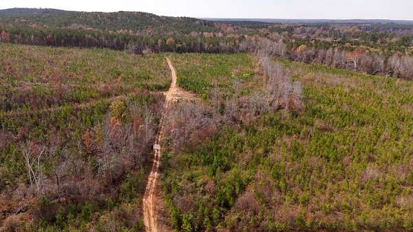 A large power line right-of-way dissects the property, creating an excellent open corridor ideal for wildlife habitat management and prime hunting opportunities. This area is particularly attractive for deer and turkey hunting, offering long shooting lanes and abundant food sources along the edges. A well-established internal road and trail system extends for miles across the rolling terrain, allowing excellent access for timber management, ATV riding, and recreation. The property supports abundant wildlife, including deer, turkey, and wild hogs, making it a true sportsman's destination.