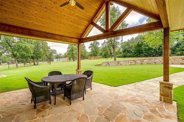 - Covered Patio/Porch, Fence, Fire Pit, Rain Gutters, Stable/Barn