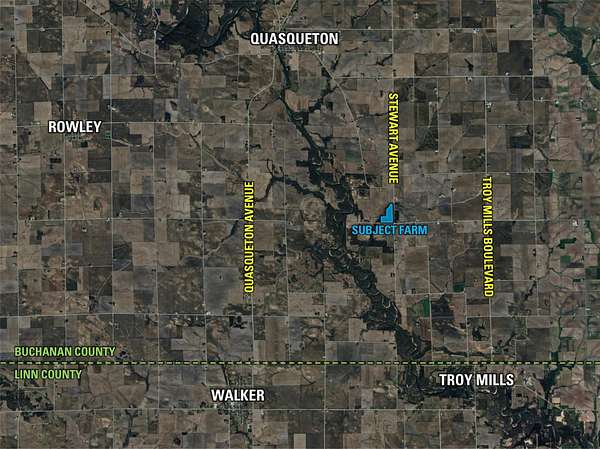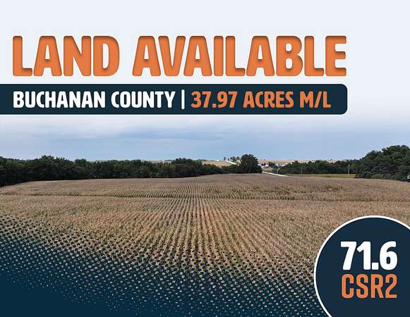 I'm pleased to present 37.97 acres m/l of quality farmland located in Buchanan County, Iowa, north of Troy Mills. The farm consists of 29.72 FSA tillable acres carrying a CSR2 of 71.6. The cropland is considered NHEL, Non-Highly Erodable, and has been well-maintained and improved over the years. In addition to row crop land, there are approximately four acres of trees and a small creek at the edge of the property line, creating the ability to place a deer stand and have a recreational value-add. The land is currently owner-operated and has a strong yield and fertility history. The farm is mostly pattern tiled with original clay tile, and recent additions of plastic tile as needed, creating a turn-key farm ready for farmers and investors alike. The convenient location along 310th Street and Stewart Avenue in Section 13 of Cono Township, Buchanan County, Iowa, is near multiple grain outlets.
