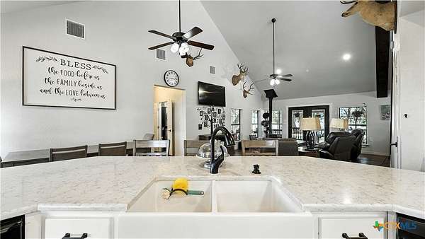 Welcome to this 3 bedroom, 3 bathroom home, spanning 2340 square feet, sitting on a 5 acre lot surrounded by majestic oak trees. This property is a true sanctuary for those seeking tranquility and space! Step inside to discover a beautifully designed open-concept living area ideal for entertaining and family gatherings. The wood tile floors flow seamlessly throughout, enhancing the home's warm and inviting ambiance. The spacious living room features a cozy wood burning stove, perfect for those winter nights. The heart of the home, the kitchen, has gorgeous granite countertops, complemented by stylish cabinetry. You'll find ample space for pantry storage, meal prep, and entertaining. The kitchen also has an ice machine, beverage cooler, smooth cook top, built in microwave, and oven. All bathrooms have tile showers and primary has a tub with separate shower and double vanity. An office space provides the perfect nook for remote work, while a dedicated utility room adds convenience. Outside, the property features a 2 car attached carport, complete with a fully floored attic space for additional storage. A storage shed sits on the property, offering even more room for your outdoor equipment and hobbies. This home operates on a septic tank and well water, and the house is plumbed for a water softener. Imagine sipping your morning coffee on the porch surrounded by nature. This beautiful home is ready for you to create lasting memories.