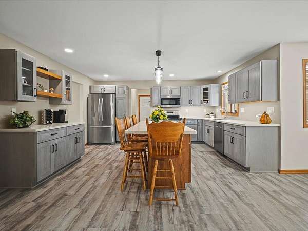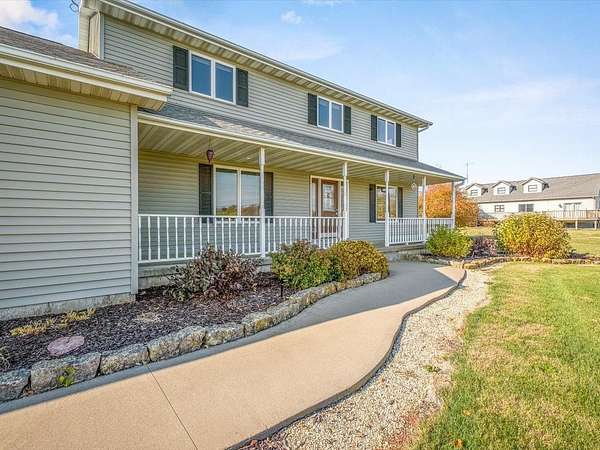 RURAL RETREAT & HOBBYIST PARADISE! 2 ACRES with a POOL, HOT TUB, PUTTING GREEN, & an AMAZING OUTBUILDING with it's own heated and air conditioned RETREAT! FULLY RENOVATED KITCHEN! Enjoy panoramic views of the rolling countryside from this beautifully updated home, located just a short drive to Galena, IL, and nestled near the charming small town of Stockton. This move-in ready home features Andersen windows, two fireplaces, and a stunning kitchen fully updated in 2022 with high-end soft-close cabinets, slide-out shelving, solid-surface counters, under-cabinet lighting, a separate pantry, and a dedicated coffee station. New appliances were installed in 2022, and new flooring was completed in 2021. Step outside to enjoy all the amenities, including a new pool and deck (2023), hot tub area (2022), updated landscaping with limestone accents (2022), a putting green (2025), and expanded acreage with an additional PIN for a full 2-acre property. Extra driveway concrete was added in 2024 for convenience. A major bonus is the 1,409 sq ft outbuilding—renovated in 2022 with heat, A/C, and loft storage—offering the perfect retreat, office, or hobby space. With 14' ceilings, a 12' overhead door for RVs, and an additional 10' door, it’s ideal for oversized equipment or recreational vehicles. Inside, the primary bedroom impresses with vaulted ceilings, a fireplace, a walk-in closet, and a beautifully tiled ensuite with a step-in shower. The guest bathroom features dual sinks, and the open-concept layout flows seamlessly from the living room to the kitchen. The home includes dual access to the basement (from inside and through the garage) with partial exposure, finished space, and a full bathroom. In addition to the many renovations, mechanical updates include a furnace in 2020 and a newer water heater. Come see all this beautiful property has to offer—an absolute MUST SEE! Some photos virtually staged.
