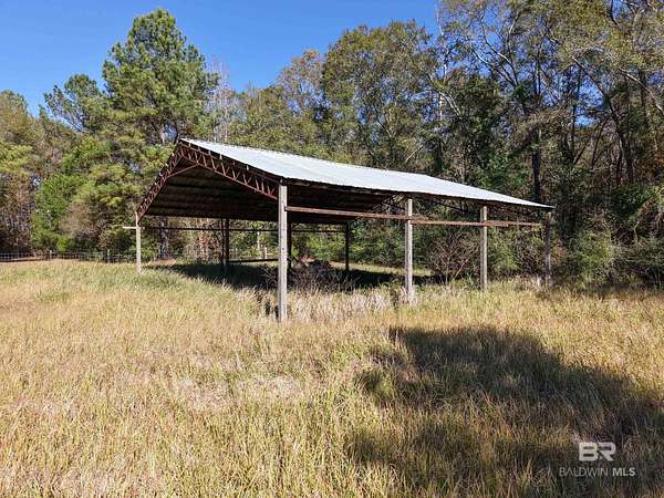 Beautiful 11-acre lot in Stokley Plantation featuring a large pond supported by its own dedicated well, and features a covered dock house, perfect for relaxing, fishing, or enjoying the peaceful water views, a pole barn for versatile storage space. Fully fenced with a mix of open land and wooded areas, offering privacy and versatility. Power already on-site, plus two wells; one for a future home and one for the pond. Scenic setting along a quiet paved road, just minutes from Atmore. A perfect spot for a custom home, recreation, or a private retreat. Buyer to verify all information during due diligence.