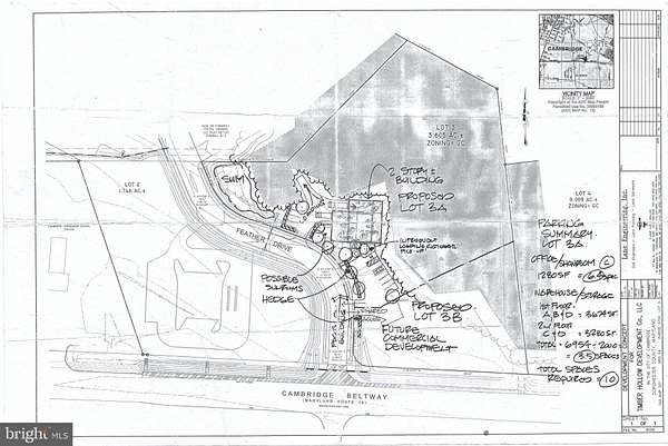 Owner will consider all offers for this 3.61 acre parcel at the corner of Route 16/Cambridge Beltway and Feather Drive within the City of Cambridge with previously approved subdivision plans to create 2 lots. Concept site plan for commercial development provided, showing setbacks and total buildable area. Zoned General Commercial with allowance for Residential Development. Served by Cambridge utilities, this parcel lends itself to a retail presence though can be used for a variety of uses. Access from Route 16 and Feather Drive, the property sits at the entrance to a large residential community, with traffic counts along Route 16 of nearly 6,000 vehicles every day. Offered for $125,000. The property has been graded, and grading and fill materials may include stone, concrete, and/or asphalt materials.