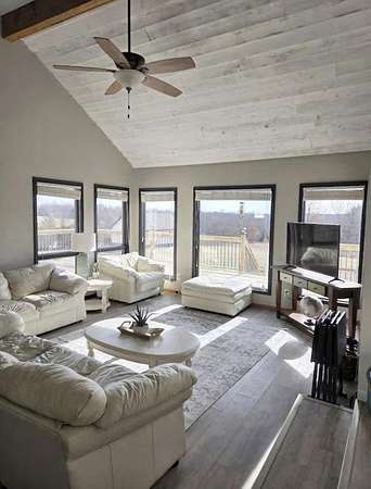 Just minutes from Mark Twain Lake and boat ramp, this stunning 4-bedroom, 3 bath home offers comfort, style, and incredible views! Step inside to find a beautifully updated kitchen featuring modern finishes, updated bathrooms, and fantastic views from nearly every room! The main-level bedroom provides convenience and direct access to the back deck; the perfect spot to enjoy your morning coffee. The two upstairs bedrooms feature private balconies. The partially finished basement adds extra living space for a game room, media area, or guest suite. The expansive deck on the main level is ideal for entertaining. After a day on the water, you will be able to unwind in the brand-new hot tub and soak in the peaceful surroundings. Outside, you'll also find a spacious 24x36 metal pole barn, ideal for storing your boat, lake toys, or recreational vehicles; a must-have this close to the lake! With its prime location near Mark Twain Lake and amenities designed for both relaxation and recreation, this property is perfectly suited for family living, weekend getaways, or a profitable short-term rental opportunity. Don't miss your chance to own your own slice of lake life.