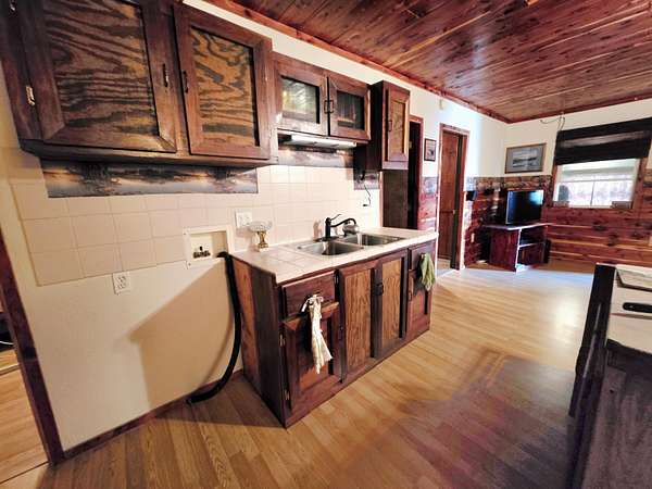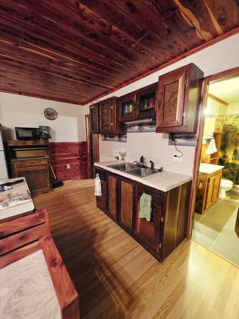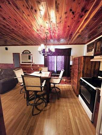Escape to the lake and enjoy the peace of your own 3.57 acres right off the blacktop! This charming 2 bedroom, 1 bath cabin is move-in ready and full of rustic character, featuring hand-sawed cedar ceilings, an oak accent wall, a cozy porch, and beautiful handmade walnut cabinets. The low-maintenance metal siding makes upkeep simple so you can spend more time relaxing. The property is already set up with water, electric, a leased propane tank, and lagoon, making it ready for weekend getaways or full-time living. With plenty of room to expand, there's exciting potential to add camper sites, additional cabins, or create the lake retreat you've been dreaming about. Located just minutes from the boat ramp and the historic town of Florida, where you'll find a winery, beach, and lake access,