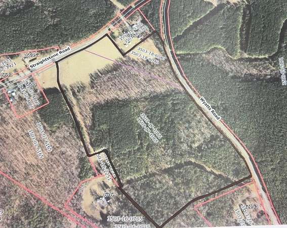 Discover the possibilities with this expansive 42.99 +/- acre tract, offering a rare blend of privacy and accessibility. Heavily wooded throughout with 10 +/- Acres of Hardwood, 26 +/- Acres planted pines approximately 15 +/- years old, and 8 +/- Acres of open field. This property provides the perfect setting for those seeking a peaceful retreat, recreational land, or a future homesite tucked away in nature. With 500 +/- sq. ft. of road frontage on Straightstone Road and 1500 +/- sq. ft. road frontage on Wyatts Road, access is convenient while still maintaining a sense of seclusion. The mature timber and natural landscape create an ideal environment for hunting, exploring, or simply enjoying the outdoors. Whether you're looking to build your dream home, establish a private getaway, or invest in land with potential, this property offers endless opportunities. Don't miss your chance to own a beautiful piece of acreage with dual road frontage and abundant natural charm.