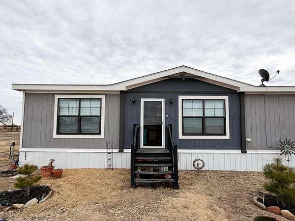 A Diamond in the Rough with Income Potential. Enjoy the amenities of country living with the added benefit of rental income on this unique property located just south of Stratford, Texas, with easy access right off Hwy 287. Situated on approximately three acres, this property offers space, functionality, and opportunity. The main residence is a 2021 Clayton built home from the Farmhouse Collection, featuring modern farmhouse style and comfortable living space. 3 bedrooms, 2 baths. Additional improvements include a 40' x 100', metal frame, Quonset barn, a set of livestock pens, and a second stucco home with a detached two-car garage that is currently being used as a rental property, providing income potential. This home has 2 bedrooms, 1 bath, has been remodeled and includes central heat and air, newer windows and a metal roof. This versatile property offers room for livestock, equipment, and investment opportunity all in one convenient location.