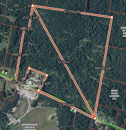If you're looking for “your own little piece of the world”, you found it. This 98.56, acre primarily small growth woodland, can be the Perfect Getaway Space, Hunting Property or Ideal Investment Property! The diagonal measurement across the property is 6/10 of a mile. Build within 150 feet of Route 322 or hidden in the middle of your private compound just East of Strattanville. Used primarily as a hunting property over the last 10 years it is home to Deer, Turkey and the occasional Bear. If you wish to enjoy the outdoors all year long or just to be close to the outdoors, Here Is Where You Need to Be! Existing Oil Well provides quarterly royalties. Clarion Township has no zoning restrictions, so bring your creativity. Also, subdivision into multiple lots is a possibility. The property was timbered 10 to 15 years ago and has a small stream running through it. Great access to RT 322, CL Schools & easy access to I-80, Clarion & Brookville. Call today to see how close Nature or Home can be!