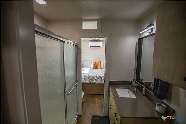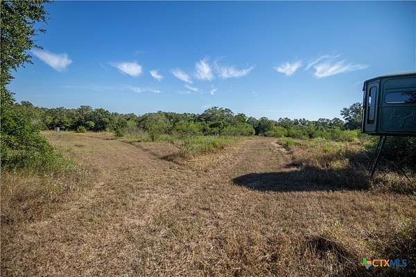 Spanish Moss Oak Ranchito is 109.03 acres of oak-covered Texas countryside with a turnkey setup for ranching, hunting, or weekend escapes. Located on Stratton Road between Cuero & Yoakum in DeWitt County, the property features ancient live oaks, post oaks, cedars, and dense underbrush that provide excellent wildlife habitat. Strong perimeter fencing, a stock tank, native grasses, and a seasonal creek in the northwest corner support both cattle and game. Improvements include two fully finished container homes with bedrooms, showers, TVs, mini-splits, and unique touches, such as a bay window and a rooftop viewing deck. A brand-new water well and wellhouse, along with electricity and a meter, are in place, and the property is WiFi-ready (Starlink-capable). A luxurious hunting blind and two easy-fill corn feeders also convey. Spanish Moss Oak Ranchito offers direct road frontage yet remains private and secluded. Ag-exempt with sandy loam soil, abundant shade, and thriving wildlife, it's ready for immediate enjoyment. Community: Nestled between Cuero ("Turkey Capital of the World") and Yoakum ("Leather Capital of Texas"), the area offers small-town charm, local dining, shops, museums, rodeo events, and essential services. San Antonio, Austin, and the Texas Coast are all within easy driving distance. Minerals: Owns partial. None convey.