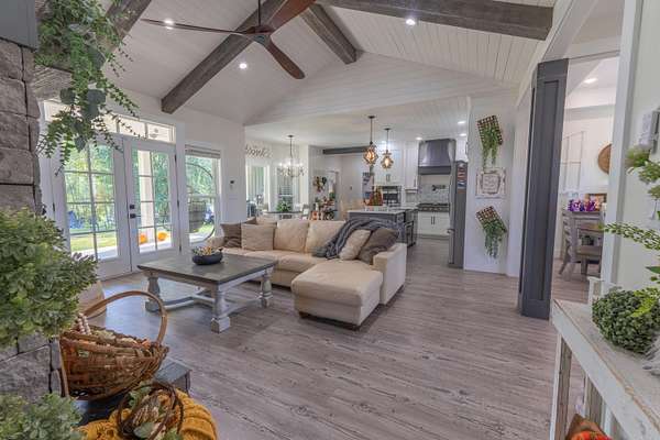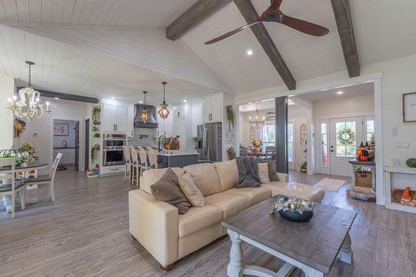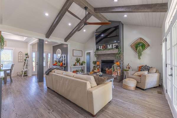 Now offering an extraordinary opportunity to own a truly one-of-a-kind estate set on an impressive 84.56 acres of breathtaking countryside. Recently surveyed and thoughtfully divided into a 7-acre parcel and a 77.56-acre parcel, this remarkable property provides flexibility for future plans while delivering unmatched privacy and space. Approximately 27 acres are cleared and usable, perfect for farming, livestock, recreation, or additional building sites, while the remaining wooded acreage creates a serene backdrop rich with wildlife and natural beauty. Three large ponds are strategically positioned throughout the property, adding both stunning views and endless possibilities for fishing, relaxing, or enhancing your outdoor lifestyle. Built in 2023 with quality and efficiency in mind, this spectacular custom home combines modern design with timeless finishes. From the moment you step inside, you are welcomed by soaring vaulted ceilings and an abundance of natural light that accentuates the home's open-concept layout. The heart of the home is the breathtaking kitchen, complete with custom cabinetry, stainless steel appliances, recessed lighting, and a beautifully designed hidden pantry that feels straight out of a dream. The adjoining living area is warm and inviting, centered around a striking stone gas fireplace that creates the perfect focal point for gathering. The main level offers a thoughtfully designed split-bedroom layout, featuring a spacious primary suite that serves as a peaceful retreat. Two additional generously sized bedrooms share a well-appointed full bath, while a formal dining space, dedicated laundry room, and exceptional storage complete the main floor. Upstairs, you'll find a second living or sitting area ideal for a media room, home office, or play space, along with additional bedroom space and a convenient half bath, providing flexibility for guests or growing families. This home was built for comfort and peace of mind, featuring a whole-home generator and a tankless water heater to ensure efficiency and reliability year-round. Whether you're seeking a private homestead, recreational paradise, or legacy property to pass down for generations, this rare offering delivers it all, luxury living, expansive acreage, water features, and unmatched tranquility. Opportunities like this are few and far between. This property truly checks every box.