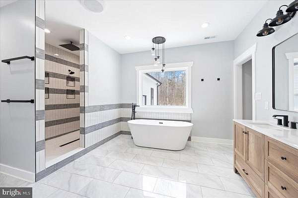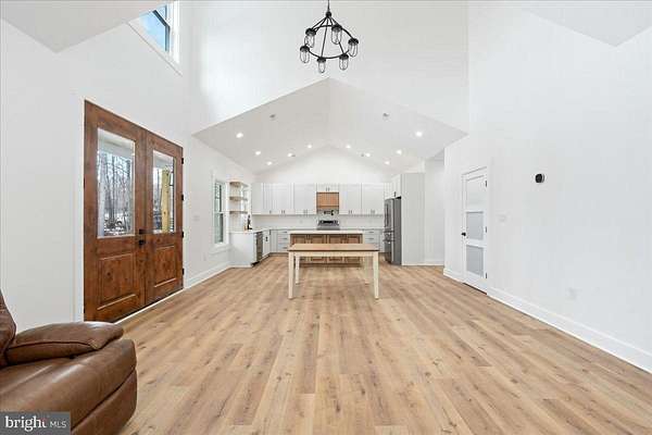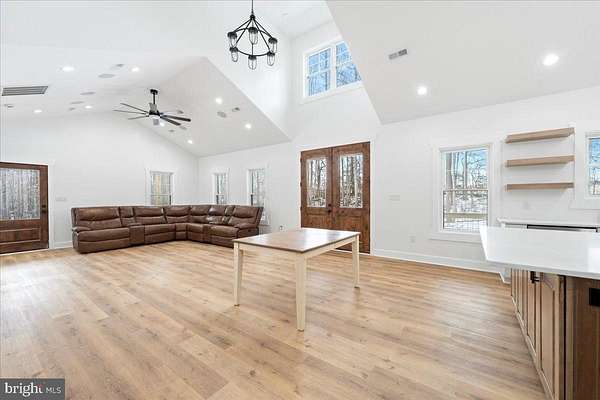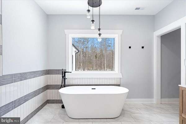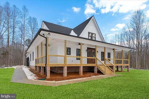 Modern farmhouse charm meets peaceful country living on 5 spacious acres just minutes from Lake Anna. This custom to-be-built, one-level home offers 1,840 square feet of thoughtfully designed living space with high-end finishes and elevated craftsmanship throughout. Photos are of the same home built in Richmond area and builder loved it so much he is duplicating here in Spotsylvania. The finishes and colors may differ from the photos attached. Home to be complete in 4-6 months. Use 7840 Stubbs Bridge RD Spotsylvania, VA in your GPS to take you to the property. Property is staked and marked for easy walking to identify homes location. A wide wraparound porch welcomes you inside to an airy open floor plan with soaring vaulted ceilings, abundant recessed lighting, and luxury plank flooring that flows seamlessly throughout the main living areas. The heart of the home is the stunning kitchen featuring crisp white cabinetry, quartz countertops, a custom wood vent hood, stainless steel appliances, floating wood shelving, and a large center island perfect for gathering and entertaining. The spacious primary suite offers a tray ceiling, spa-inspired bath with dual vanities, a freestanding soaking tub, custom tile shower with multiple niches and designer tilework, and a generous walk-in closet with built-ins. Secondary bedrooms are well-sized, and the hall bath showcases modern finishes and clean-lined subway tile. A standout feature is the oversized laundry/mudroom with custom dog-wash station - ideal for country living. The finished attached garage provides ample storage and workspace. Step outside and enjoy the privacy and freedom of 5 open acres - perfect for recreation, gardening, animals, or simply enjoying the peaceful setting near Lake Anna. This is one-level modern farmhouse living at its finest - combining style, space, and functionality in a location that offers both privacy and convenience.