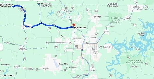 : Coming from Arkansas - Head North on Hwy59 toward Sulphur Springs, turn left on State Line Road, right on Styles Road, property on right. Coming from Missouri - Head South on Hwy 59, turn right on State Line Road, right on Styles Road, property on
