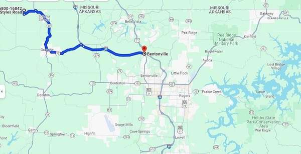 Coming from Arkansas - Head North on Hwy59 toward Sulphur Springs, turn left on State Line Road, right on Styles Rd, property on right. Coming from Missouri - Head South on Hwy 59, turn right on State Line Road, right on Styles Rd, property on right.