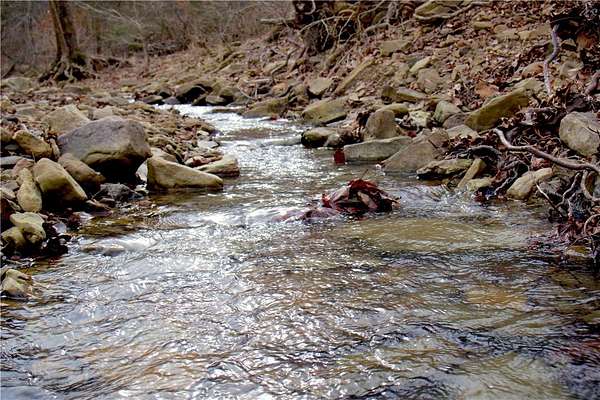 - Hardwood Trees, Mobile Home Allowed, Outside City Limits, Recreational, Rural Lot, Sloped, Stream Creek, Waterfront