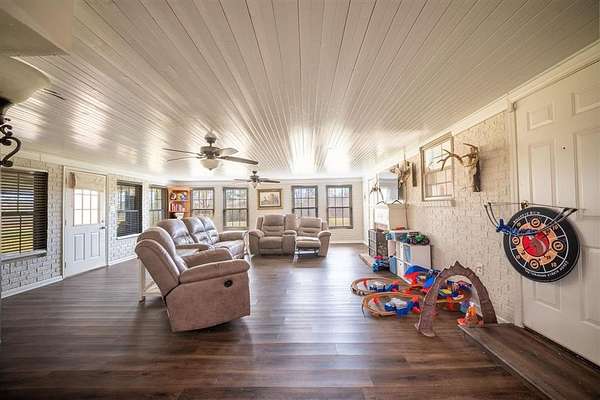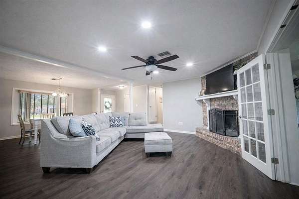 Tucked away on a quiet dead-end street just minutes from Highway 27, this beautifully maintained 3-bedroom, 2.5-bath home in Carlyss offers the kind of space and freedom today's buyers are searching for, all on a generous 1.78+- acre lot. With 2,562 square feet of living space, the open layout is both inviting and functional, featuring no carpet, recessed lighting, abundant storage, and multiple living areas designed to fit a variety of lifestyles. In addition to the main living room, you'll find a spacious sitting room with a fireplace and a flexible bonus/storage room connected to the second living area--perfect for a home office, playroom, gym, or hobby space. Two fireplaces, one wood-burning and one natural gas, add warmth and charm, making the home feel cozy and welcoming year-round. Significant updates offer peace of mind and long-term value, including a new HVAC system in 2019, a new roof in 2021, and all new windows in 2021. All appliances will remain, excluding the washer, dryer, and outdoor refrigerator, allowing for an easy move-in experience. Step outside and enjoy true outdoor living with a massive covered back porch complete with electricity, water, and natural gas--ideal for entertaining, outdoor cooking, or simply unwinding. The property also includes a detached 600 sq ft man cave/workshop with electricity and water, an RV cover with 30-amp hookup and water, and a separate RV awning/boat storage area with an attached storage room and roll-up door for lawn equipment or toys. The expansive yard provides endless opportunities for gardening, recreation, or future expansion, and the property is not located in a flood zone. Zoned Agricultural and R2, it allows for livestock such as goats and chickens as well as mobile homes, offering rare flexibility and freedom. Conveniently located near Rouses, local schools, and everyday amenities, this move-in-ready property delivers peaceful country living with modern upgrades--without sacrificing location or convenience. Measurements are M/L.