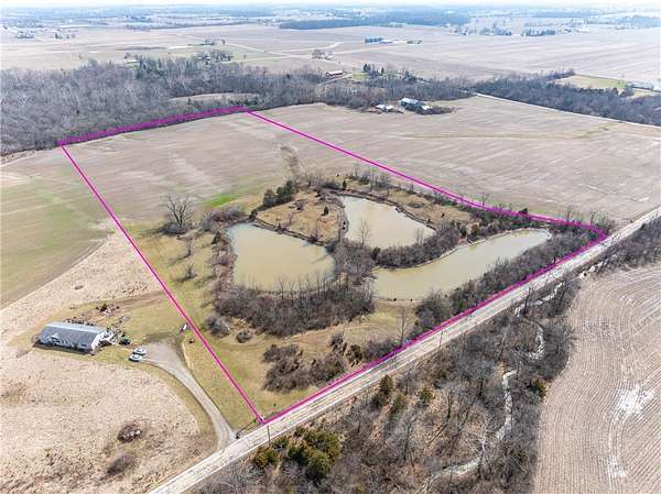 Est $2,302/moOpportunity awaits on this unique 20-acre property offering a blend of recreation and income potential! Formerly operated as a pay lake, the property features three scenic ponds that provide a peaceful setting for fishing, wildlife watching, or simply enjoying the outdoors. Approximately 12 acres of tillable ground are currently cash rented, providing immediate income while maintaining the rural charm of the land. With open space, water features, and beautiful countryside views, this property offers the perfect setting to build your dream home, hobby farm, or private retreat. Enjoy the privacy of country living while still having room to farm, fish, and create the lifestyle you’ve been looking for.