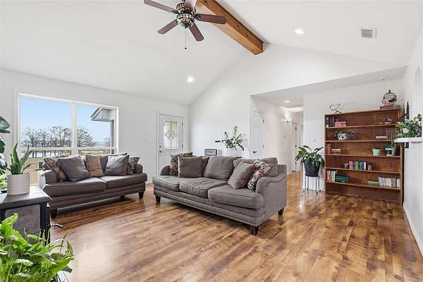 This spacious 3-bedroom, 2 bath Farm and Ranch home is for sale! The main home is approximately 2015 sf, with a large front porch and back patio. An additional flex room could serve as an office, exercise room or an additional bedroom. A sunroom provides even more space for plant lovers or for a dining room. The home has been refreshed with new windows, siding and paint in 2024. This home sits on 10.3 acres, with exceptional views of its surroundings. Additional acreage surrounding the home is available for purchase! A full-size 2-bed, 1 bath apartment with two balconies sits on top of the garage!