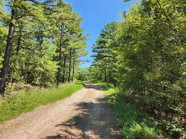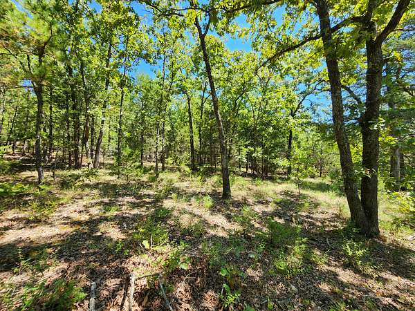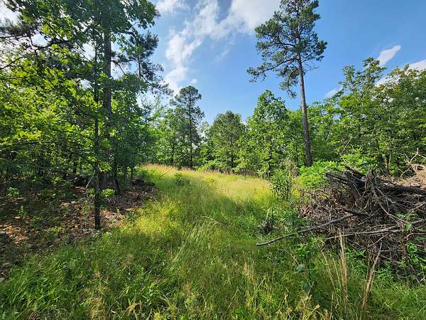 The 13.4 acres of land is mostly covered with a mature stand of timber that is native to south eastern Oklahoma including a diverse variety of oak trees, redbud, hickory and eastern red cedar as well as a nice scattering of native shortleaf pine. There is a cleared driveway onto the property that leads to the highest elevation point on the property which would be a good location to construct a weekend getaway cabin or home.