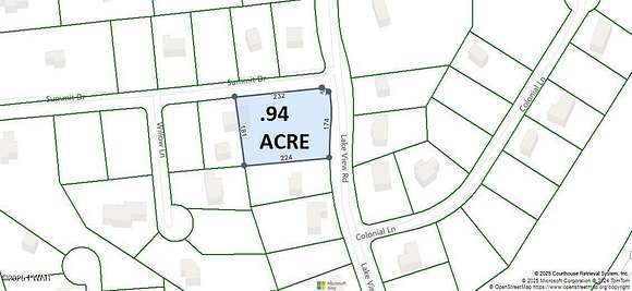 Route 507 N to left on Lake View Road into Tanglwood Lakes. (Across the road from Tanglwood Main Chalet). Lot is on the corner of Lake View Road & Summit Drive.
